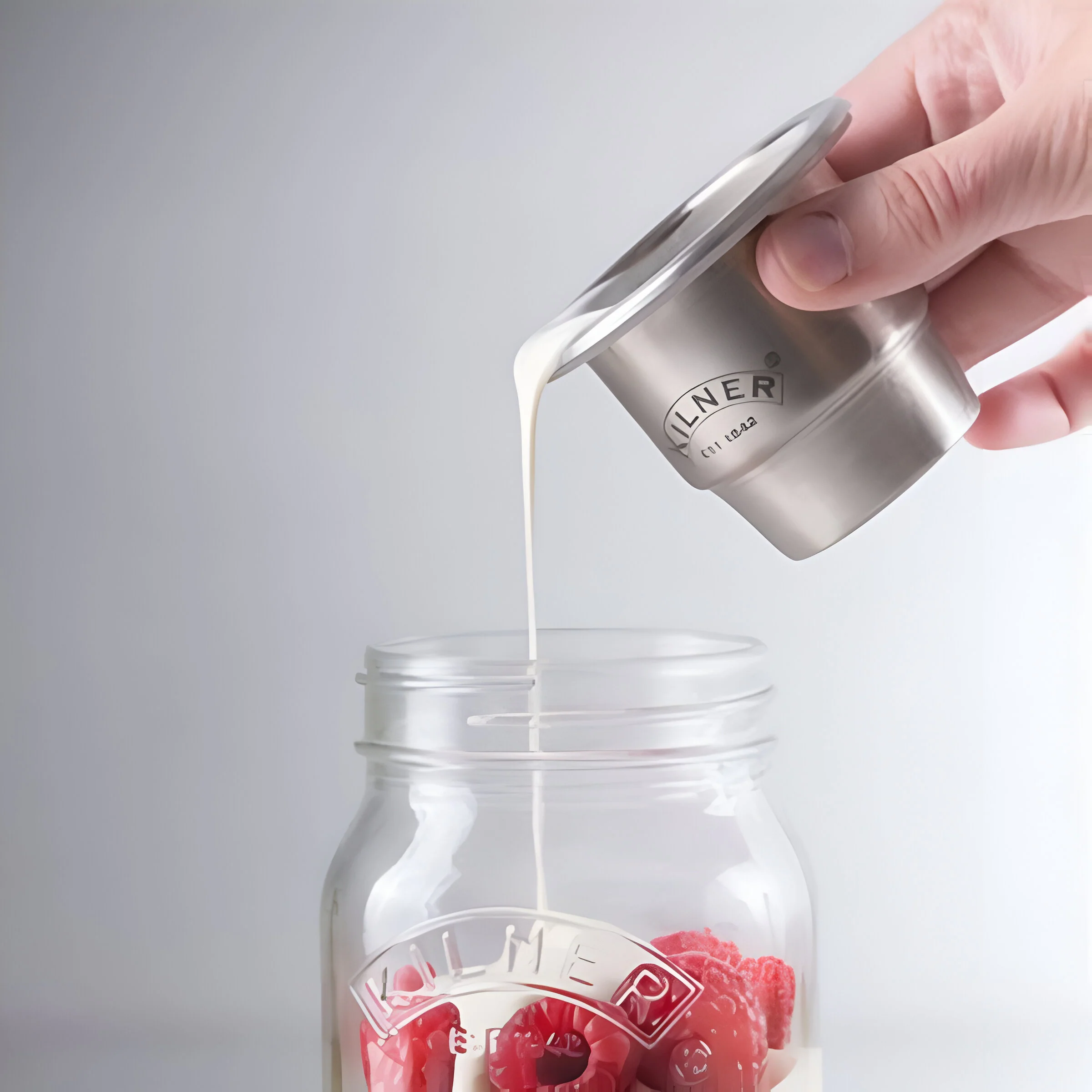 - Tarro de cristal y recipiente de inox aptos para el lavavajillas.