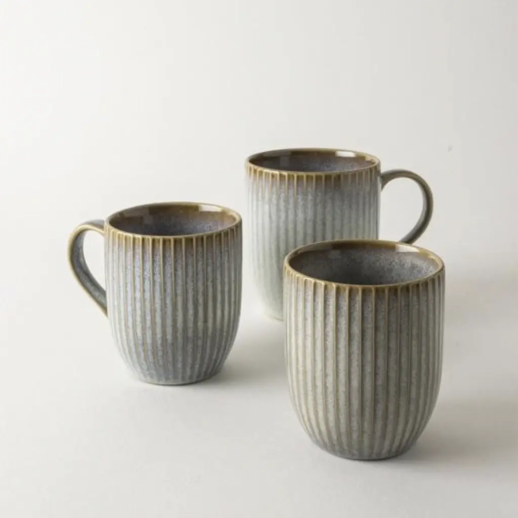 En cualquiera de sus dos colores es una taza preciosa. Su interior liso y brillante contrasta de forma maravillosa con el diseño exterior, que destaca por sus sutiles líneas acanaladas en color marrón y la línea que recorre el borde superior en ese mismo tono tierra.
