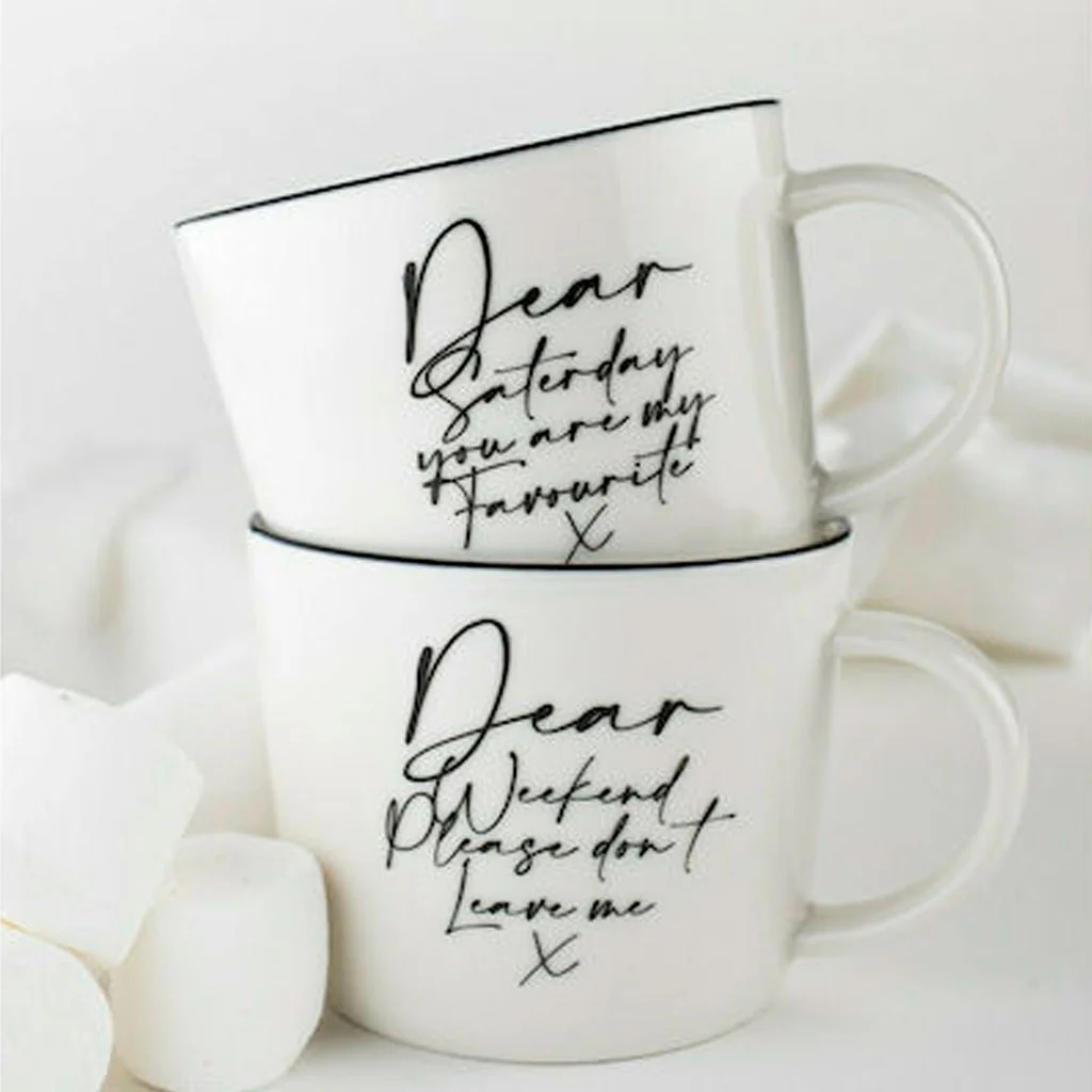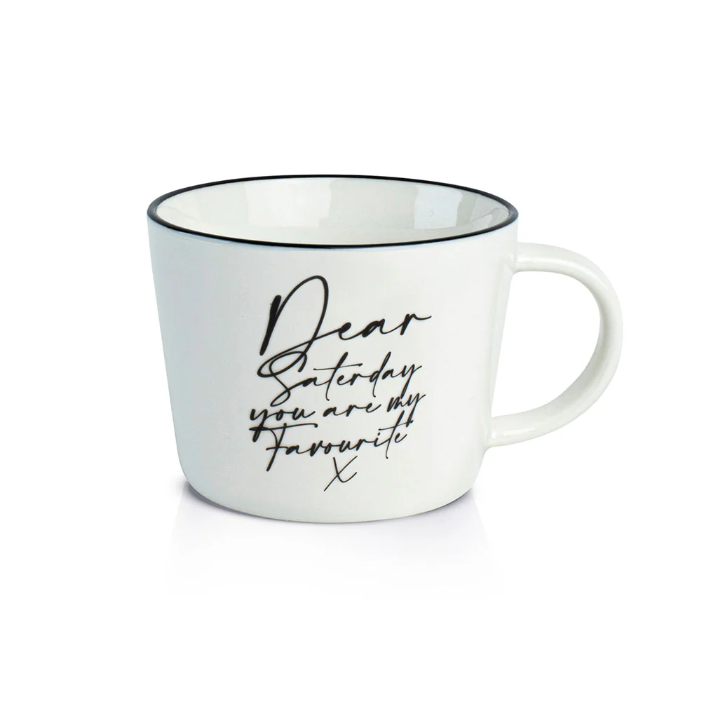 Disfruta cada momento del fin de semana con nuestra encantadora Taza «Dear Saturday» de Dutch Rose. Disponible en dos tamaños, esta taza en blanco puro con la expresión «Dear Saturday, you are my favorite» («Querido sábado, eres mi favorito») escrita en letras informales y bonitas, que añade un toque especial a tu rutina diaria, ¡y te saca una sonrisa cuando vas a cogerla el fin de semana para disfrutar de tu momento!
