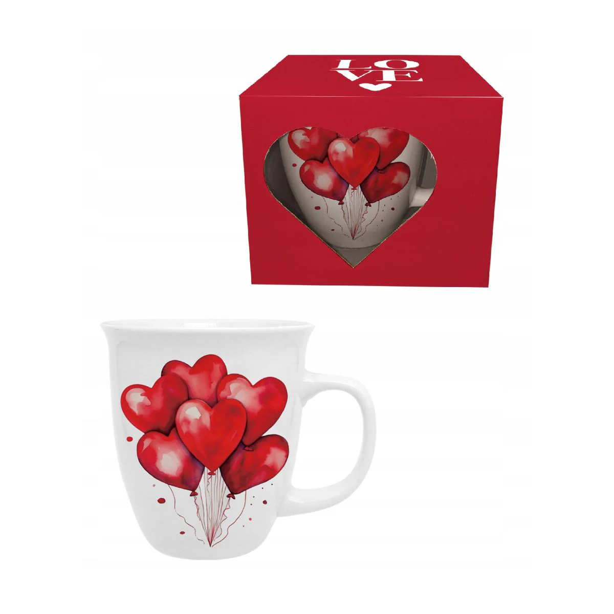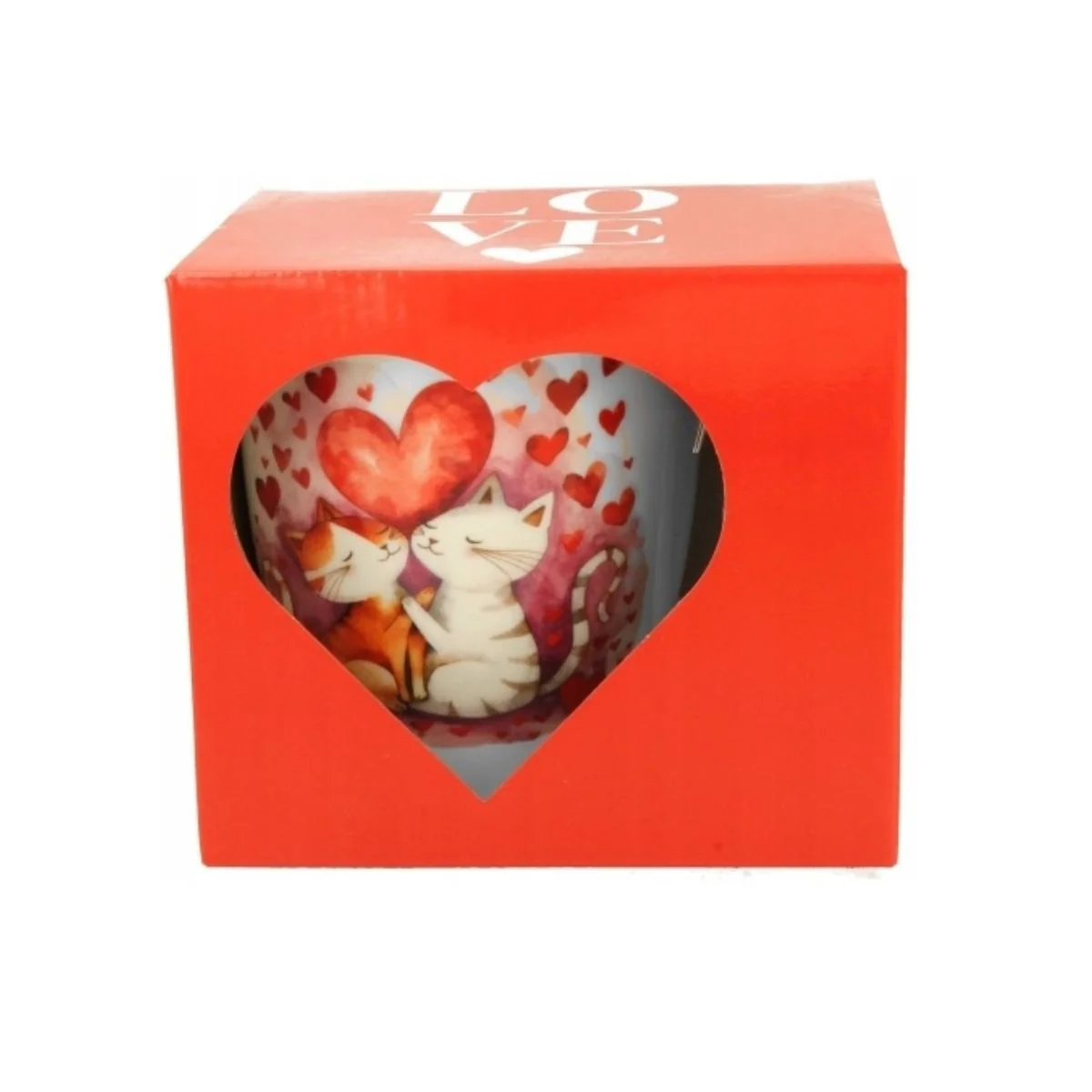 Puedes escoger entre dos diseños de taza Mug de porcelana Love Jumbo Duo: uno con gatitos y otro con globitos en forma de corazón. En ambos casos viene la taza presentada con una cajita con un troquelado en forma de corazón que deja entrever la taza dentro. ¿A qué esperas para regalar o regalarte una de estas tazas tan bonitas?