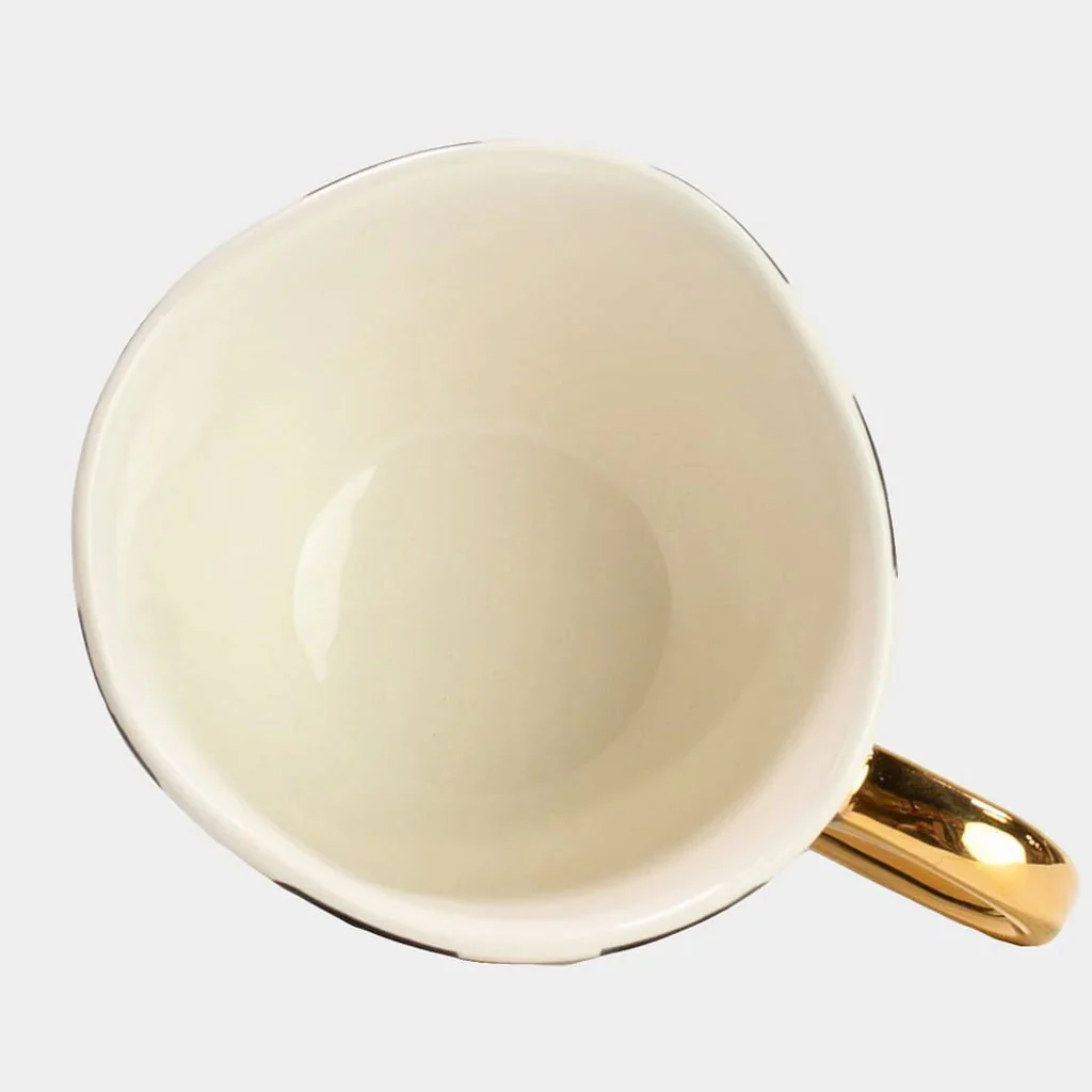 Con esta taza no dejarás a nadie indiferente. Elegante, distinguida y de lo más original, es una taza ideal para cualquier ocasión. Desde el café con leche de la mañana, al té de la tarde en esa reunión de amigos o con la familia, es una pieza con la que vestirás tu mesa de pura elegancia y sofisticación.
