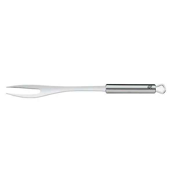 Este práctico tenedor de carne en acero inoxidable de WMF te ayudará a sacar o voltear piezas de carne, además de poder sujetarlo mientras compruebas el punto de cocción. ¡Y por supuesto es ideal para servir! Sostén con él la carne con firmeza cuando cortas asados para servirlos.