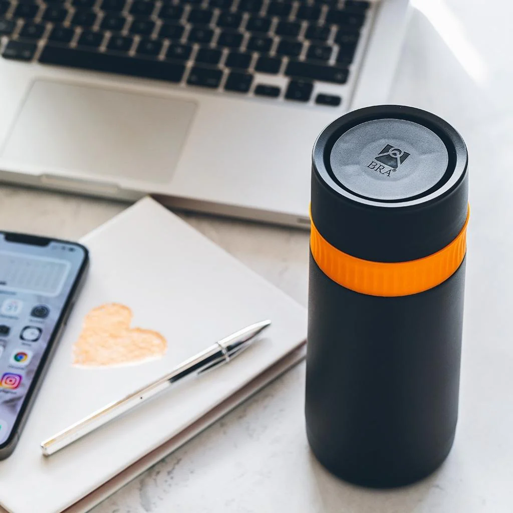 Cuando descubras el termo travel mug Enjoy Efficient de BRA se convertirá en un imprescindible para ti. No podrás salir de casa sin él tanto en invierno como en verano. ¡Llevar las bebidas de forma sostenible manteniéndolas en su punto de temperatura óptimo nunca había sido tan fácil!