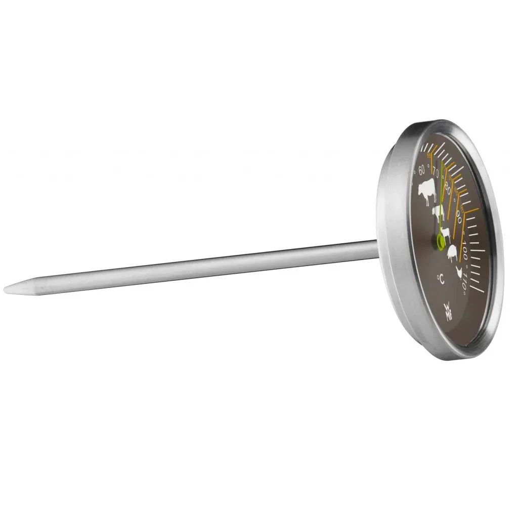 ¿Tienes dudas sobre el punto exacto de cocción de la carne? Con el Termómetro Scala WMF no habrá asado que se te resista. Su práctico diseño de esfera muestra de forma muy visual y clara, tanto los grados como los símbolos de las carnes más habituales. Tan solo has de pinchar el termómetro en la carne, meterla en el horno y con un simple vistazo sabrás en todo momento la temperatura de la pieza sin tener que abrir la puerta.