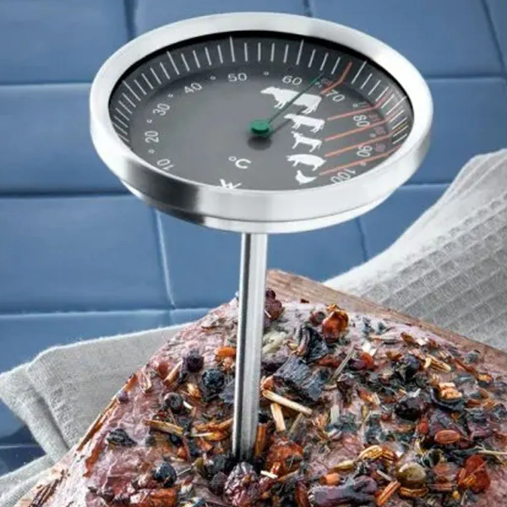 El termómetro está fabricado en acero inoxidable y es apto para su limpieza en lavavajillas.