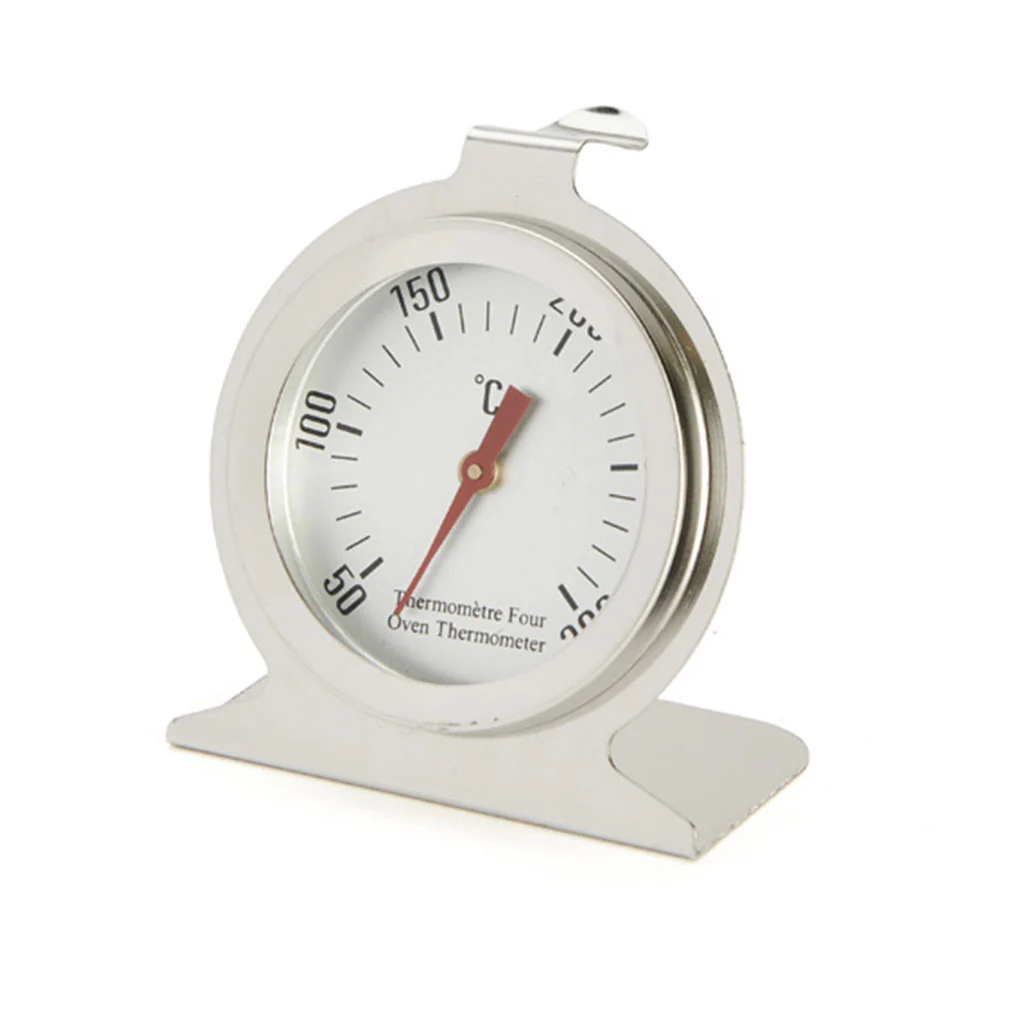 El rango de temperatura es de 50 °C a 300 °C. El termómetro está fabricado en acero inoxidable, por lo que es robusto y duradero. Además, dispone de un gancho para que puedas colgarlo en cualquiera de las rejillas del horno y tenerlo siempre a la vista, para ver fácilmente la temperatura y de un amplio pie por si prefieres dejarlo sobre la bandeja del horno.