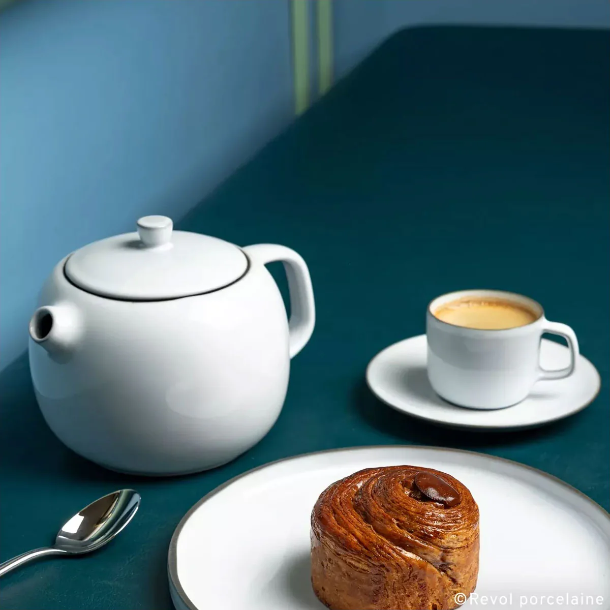 Fabricada en Francia, la tetera Madeleine de Revol combina un elegante diseño minimalista con una porcelana exquisita, producida a partir de materias primas minerales cuidadosamente seleccionas. Un material natural, sano, resistente a los contrastes térmicos y que retiene la temperatura de forma maravillosa. Además, no es porosa, por lo que no absorbe olores, sabores, ni bacterias. Sus colores se inspiran en la naturaleza, transmitiendo una relajante calidez.