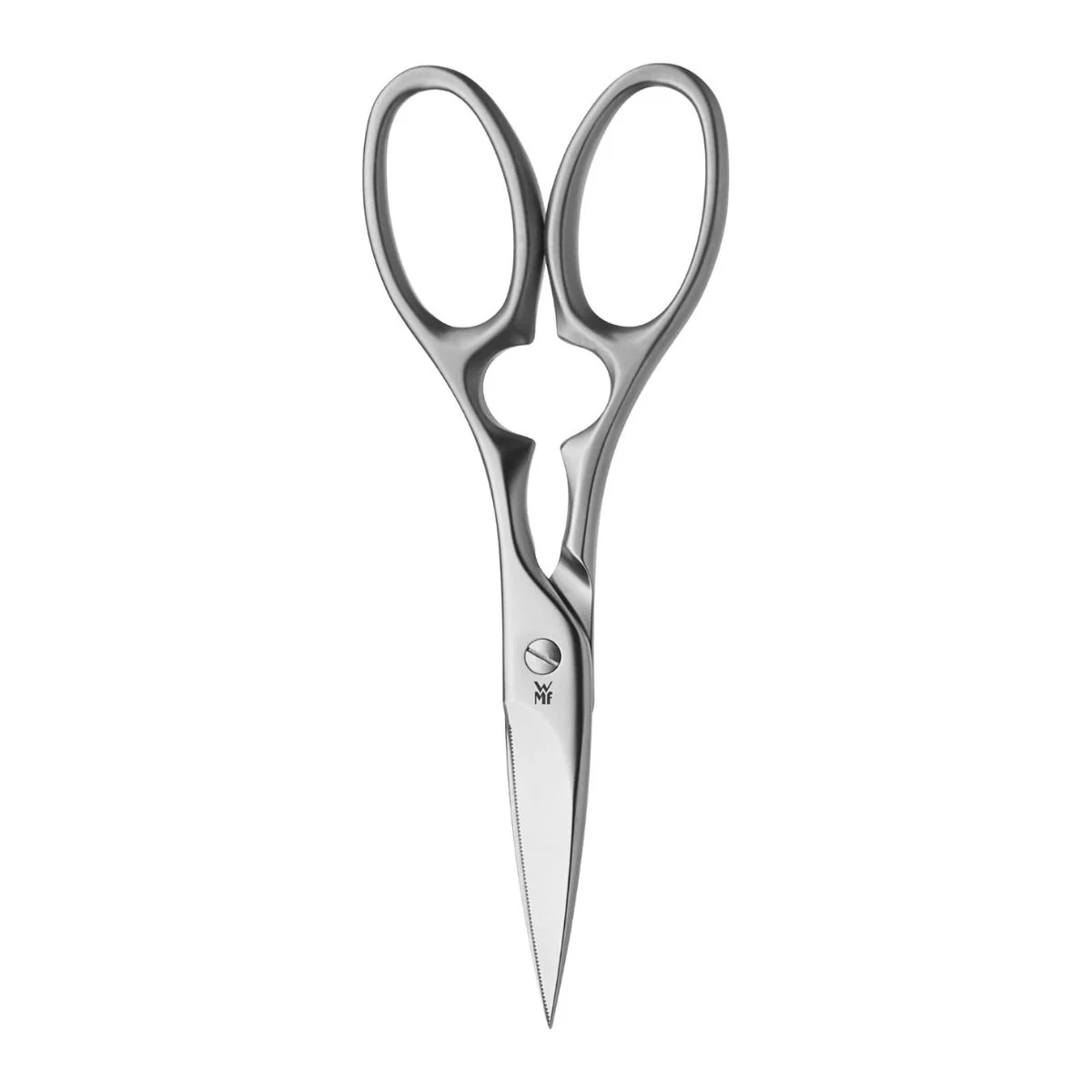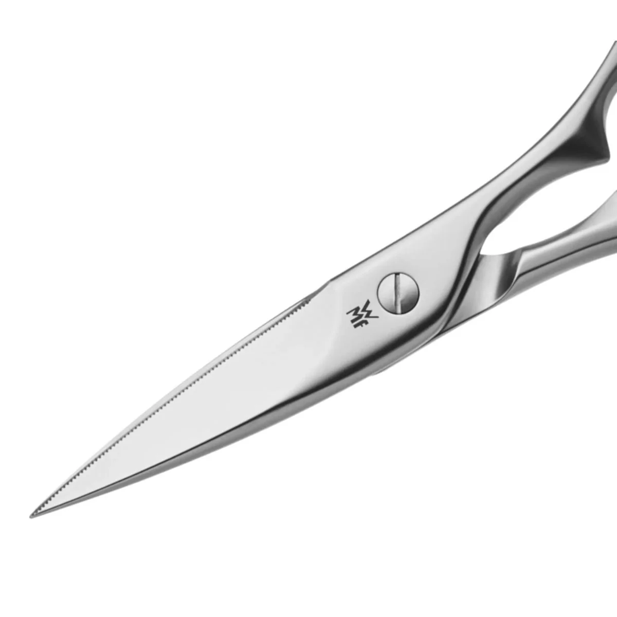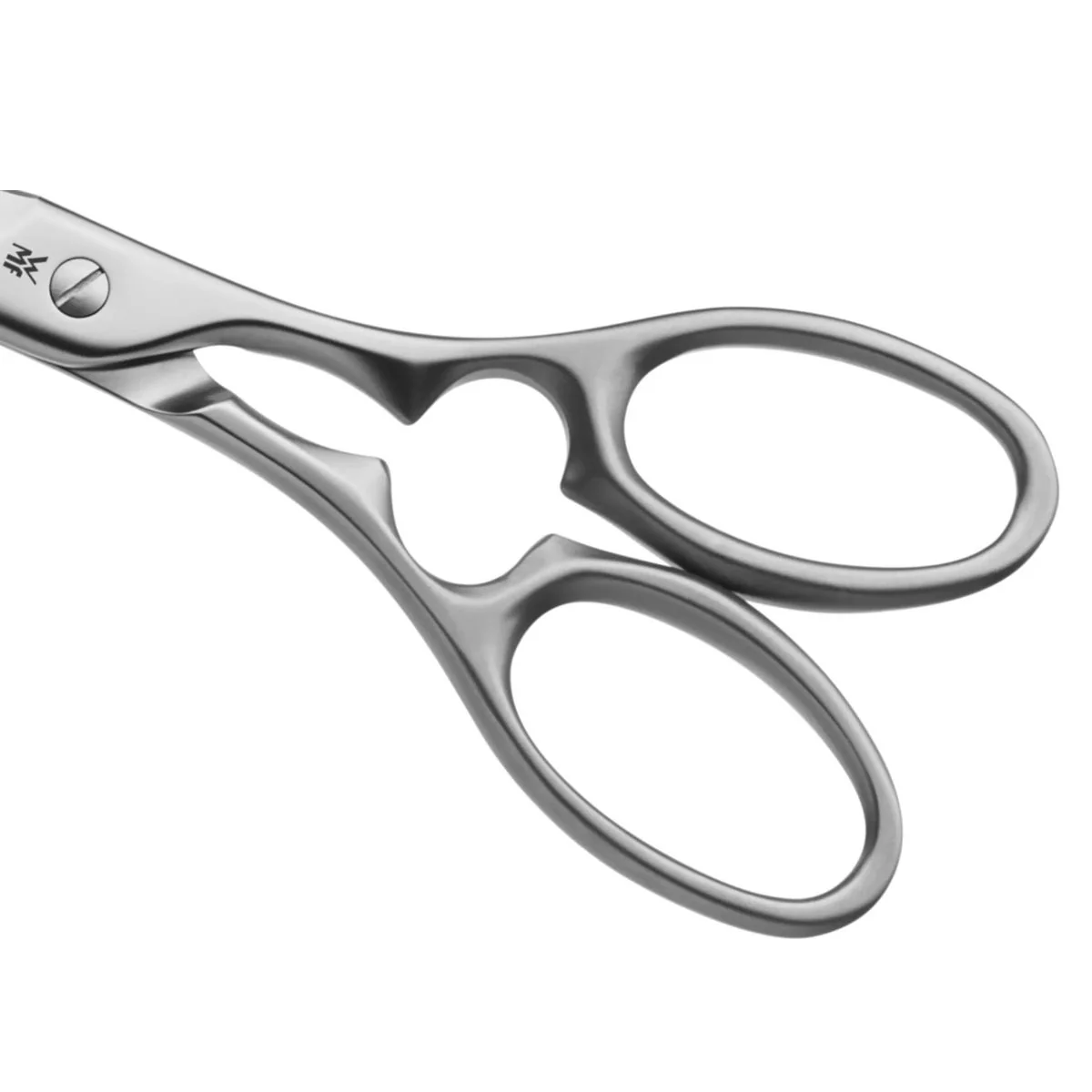 La Tijera de cocina Grand Gourmet WMF es todo un imprescindible en la cocina. Estas tijeras, de excelente calidad y fabricación alemana, están construidas totalmente en acero inoxidable, son fáciles de afilar, conservan su filo de maravilla y tienen una excelente resistencia a la corrosión. Además de para cortar, su funcional diseño las convierte en un ayudante de lujo para abrir botellas y envases. Han sido creadas para un uso intensivo, ¡perfectas para el día a día!