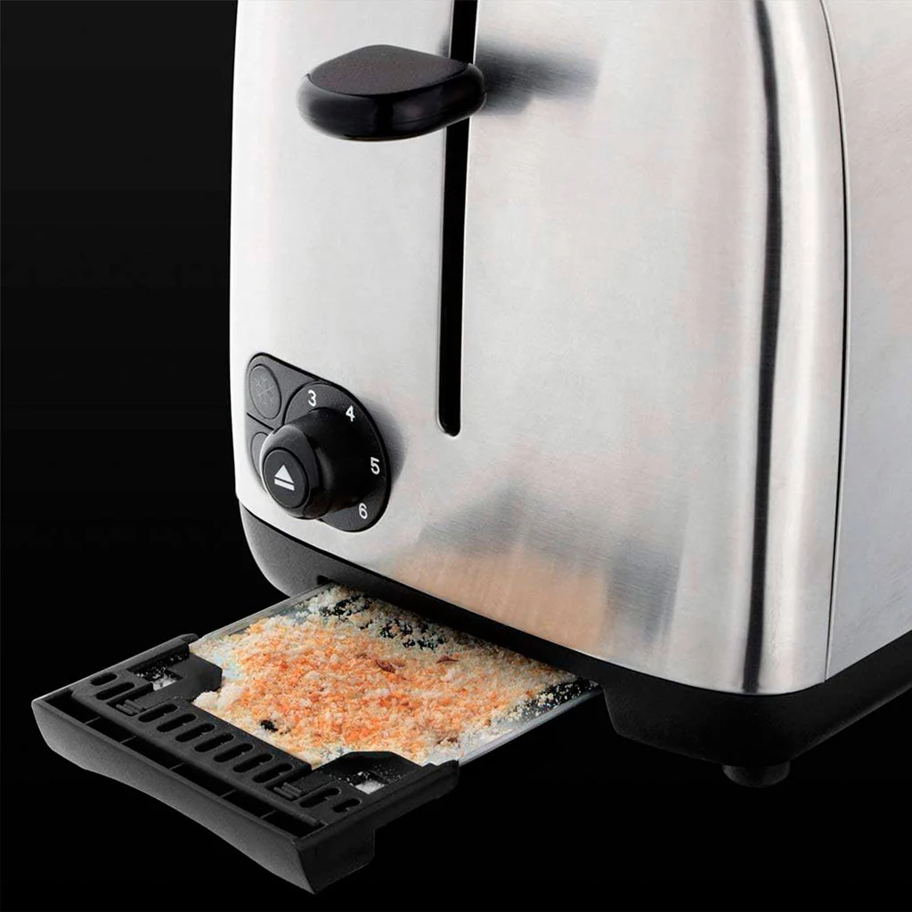 Por último mantener tu cocina ordenada nunca había sido tan fácil gracias a la bandeja recogemigas extraíble, que evita que las migas se dispersen, el recogecable mantiene todo en su sitio y sus reducidas dimensiones hacen que te ocupe el mínimo espacio. ¡Te ocupará nada en la cocina!