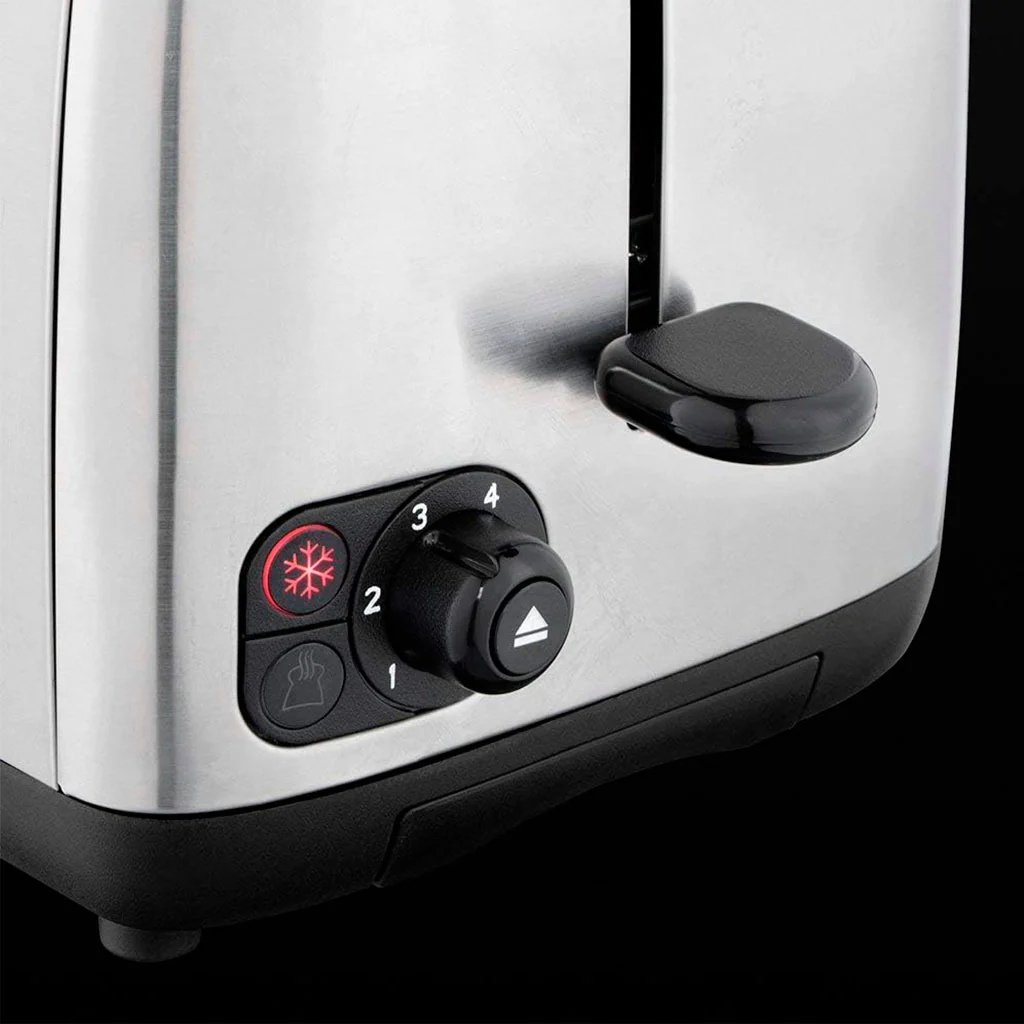 Se trata de una herramienta muy versátil, ya que, además de obtener una potencia de 850 W, esta tostadora incluye funciones adicionales para tu comodidad como descongelado y cancelación, con las que podrás descongelar pan directamente del congelador sin pasar por el microondas, o cancelar lo que estés haciendo en cualquier momento. Las luces indicadoras rojas te mantienen informado del estado del tostador en todo momento y el soporte calientapanecillos mantiene tu bollería caliente y lista para disfrutar.