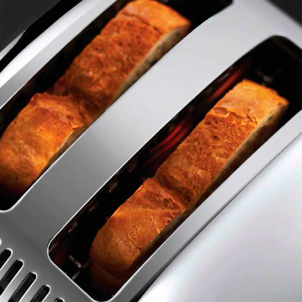 La Tostadora Adventure de Russell Hobbs, con su elegante diseño en acero inoxidable pulido, se convertirá en la compañera perfecta para tus desayunos. Este tostador cuenta con ranuras cortas pero extra anchas, ideales para tostar todo tipo de rebanadas gruesas, panecillos y bollos con facilidad y rapidez.