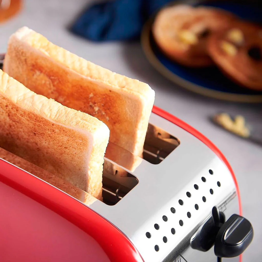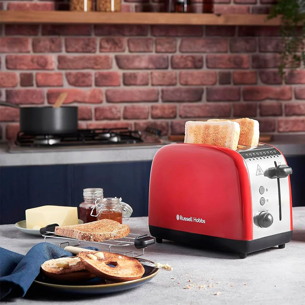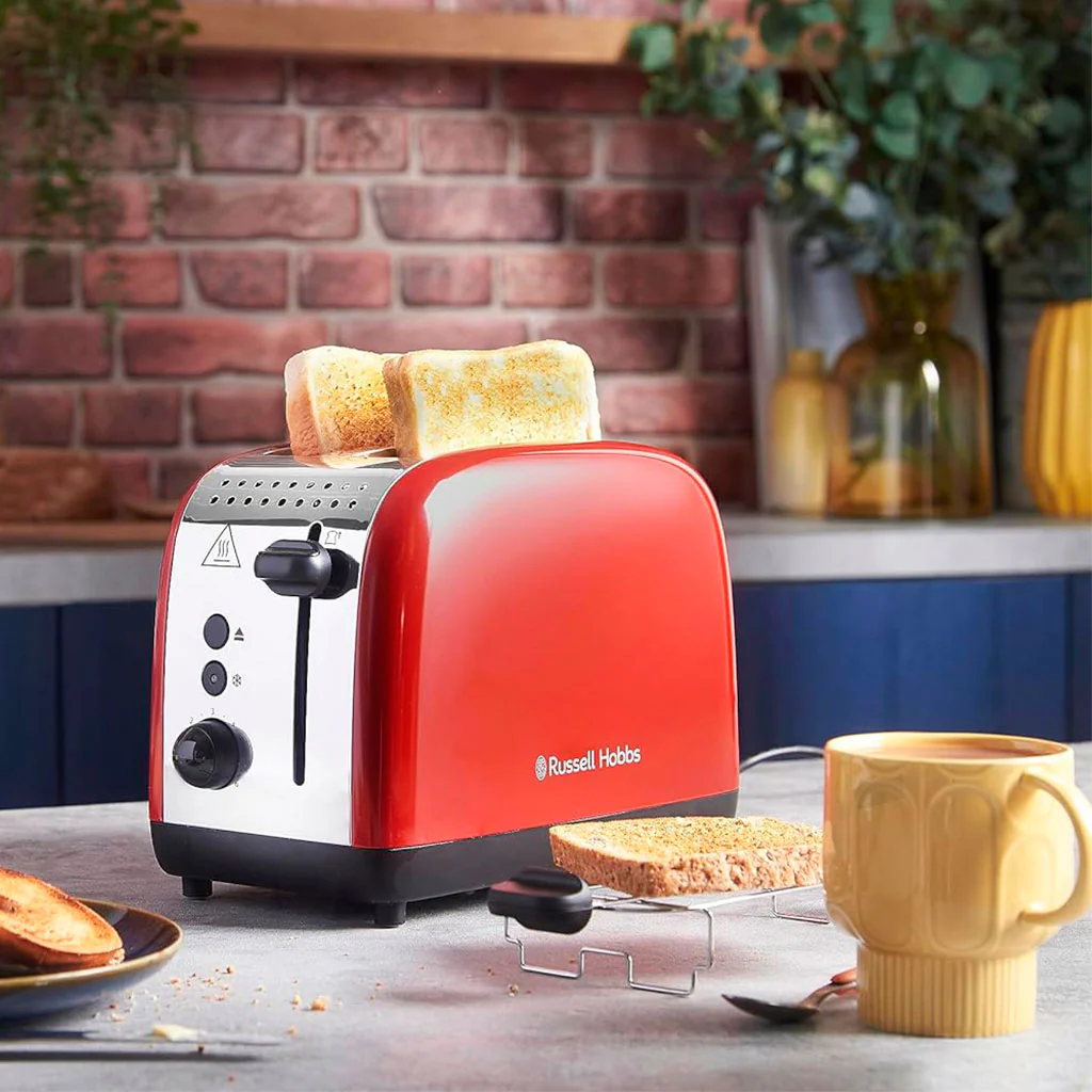 La Tostadora Colours Plus+ de Russell Hobbs, con su elegante diseño en acero inoxidable de color rojo vivo, es el complemento perfecto para tus mañanas. Este tostador de alta calidad no solo aporta un toque estético, sino que también ofrece una funcionalidad superior para que tus mañanas sean más fáciles y deliciosas. Con capacidad para dos rebanadas y sus ranuras cortas, pero extra anchas, es ideal para tostar rebanadas más gruesas o bollos.