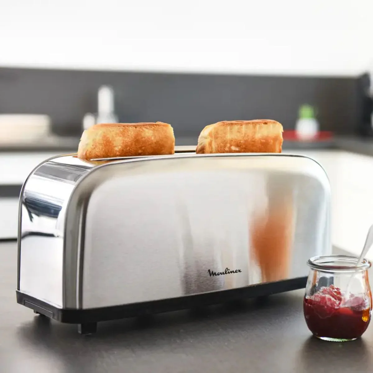 La Tostadora de 2 ranuras Classic Moulinex es perfecta para cualquier tipo de cocina: permite tostar cómodamente tanto rebanadas finas, como rebanadas más gruesas o incluso baguettes, gracias a sus 2 largas ranuras que permiten tostar hasta 4 rebanadas a la vez. Además, tosta de manera rápida y eficiente gracias a sus 1400 W de potencia, ideal para unos desayunos mañaneros de lo más completos y deliciosos. ¡Empezarás el día con más energía que nunca!