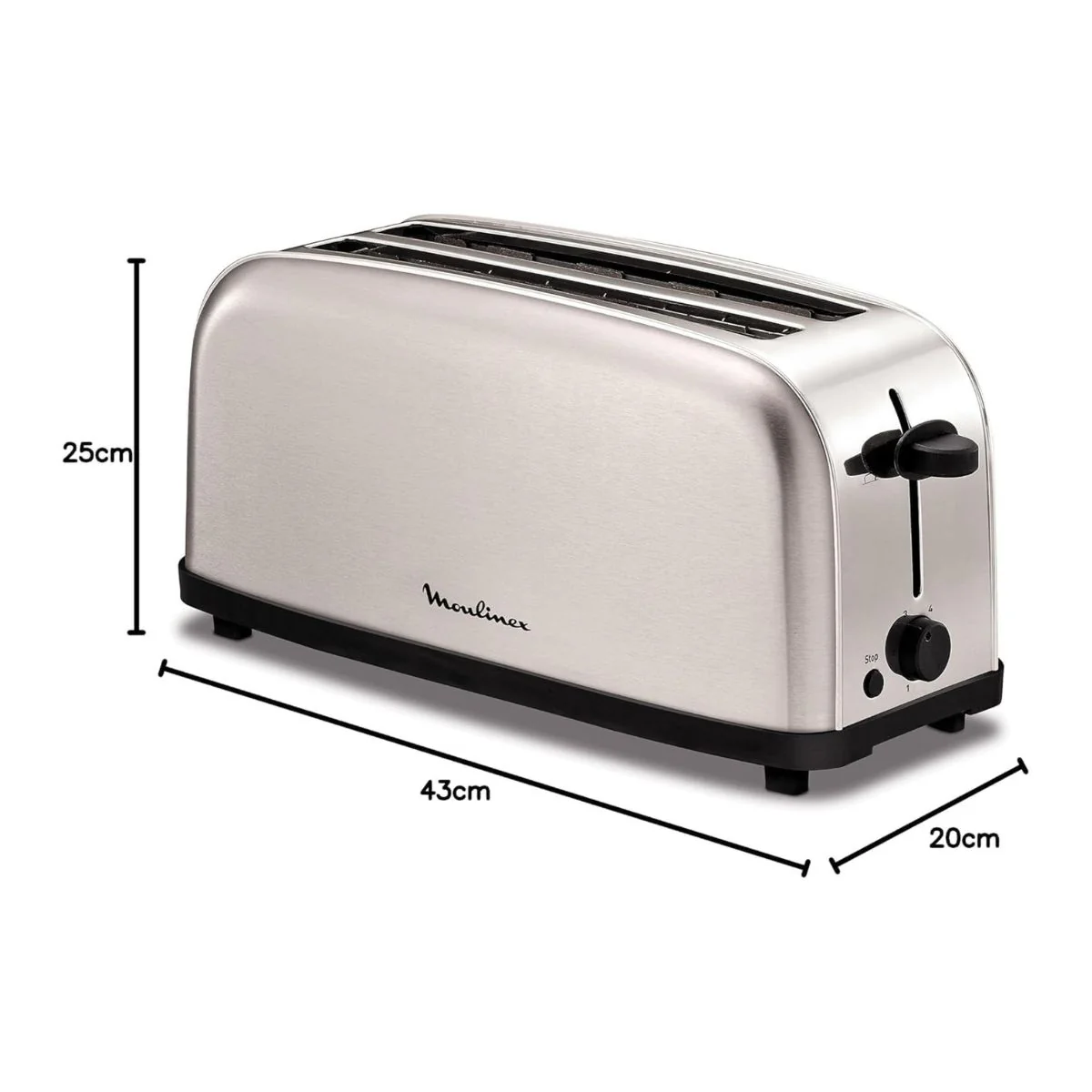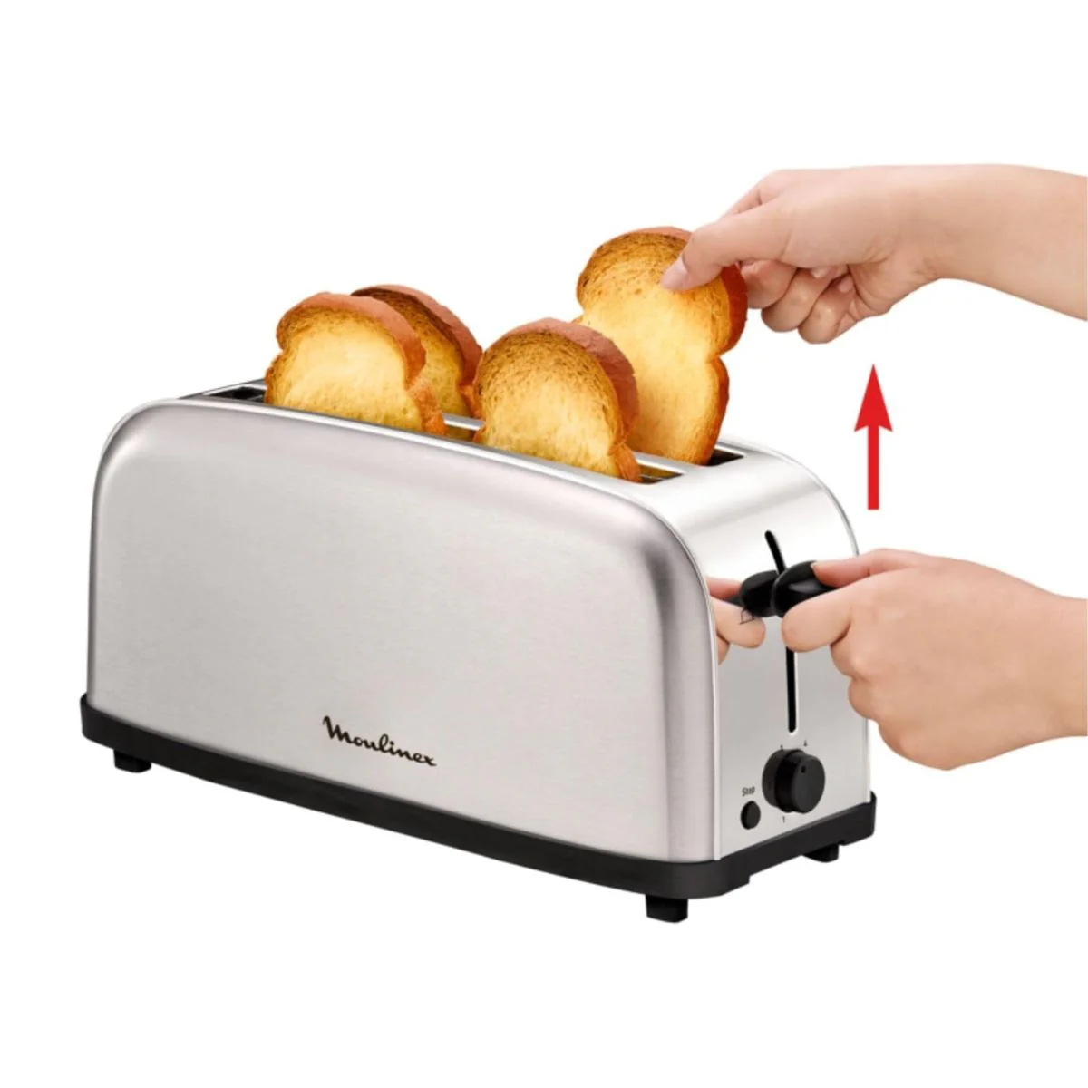 - 2 ranuras de tostado largas (hasta 4 rebanadas) que permiten preparar desayuno para toda la familia.