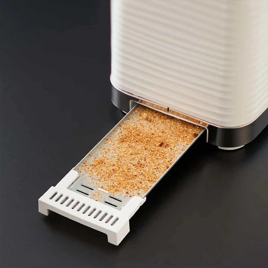 Por último, la cómoda bandeja recogemigas extraíble mantendrá tu encimera siempre limpia y evitará que caigan trocitos de pan por todas partes, mientras que el recogecable integrado asegurará que tu cocina esté siempre recogida y ordenada. ¡Te ocupará nada en los armarios!