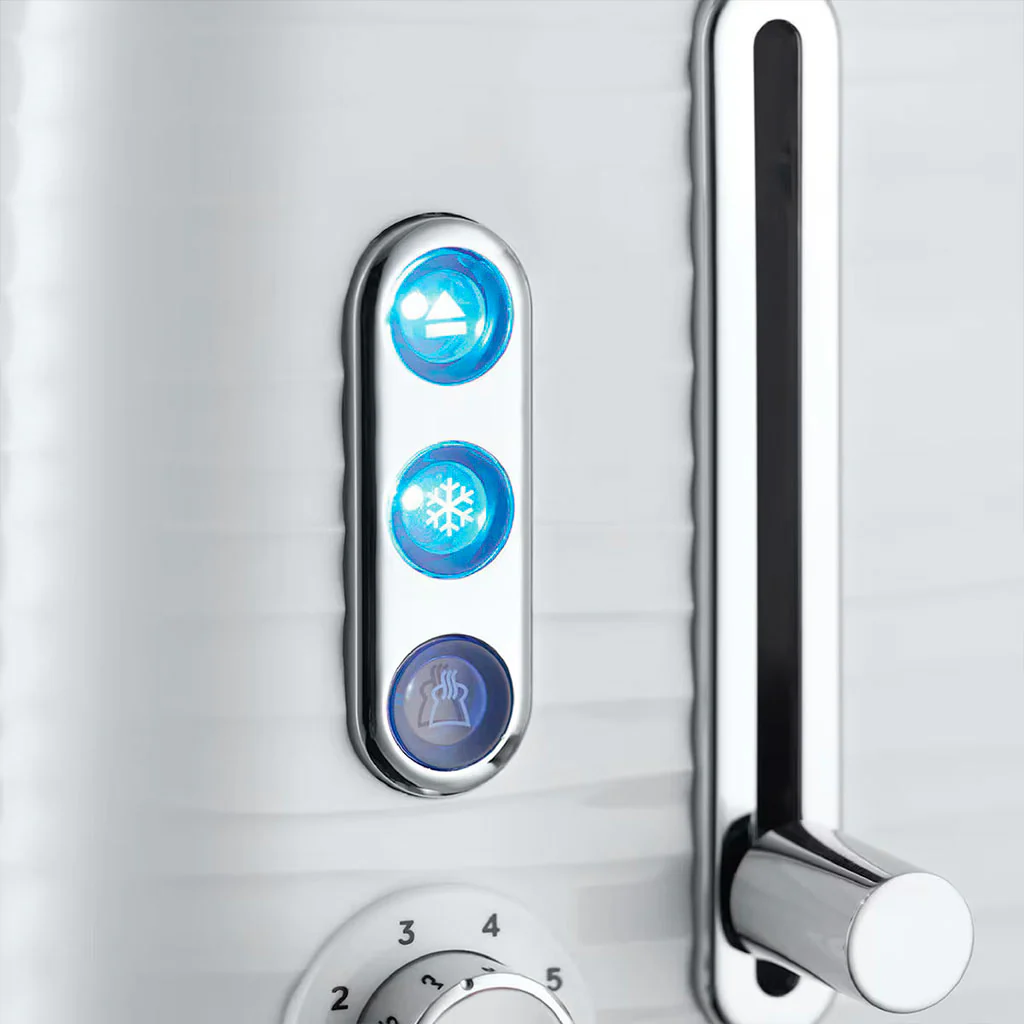 Con una potencia de 1.050 W y múltiples funcionalidades pensadas absolutamente para tu comodidad, con este tostador podrás conseguir tostadas perfectas. También podrás calentar tus panecillos o croissants mañaneros de una forma rápida y sencilla gracias a su función de recalentado, así como descongelar el pan directamente del congelador gracias a su función de descongelado. Además, cabe destacar que todas las funciones están indicadas con un indicador luminoso de luz LED azul que te ayudará a tenerlo todo bajo control.