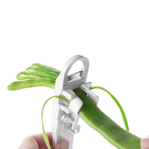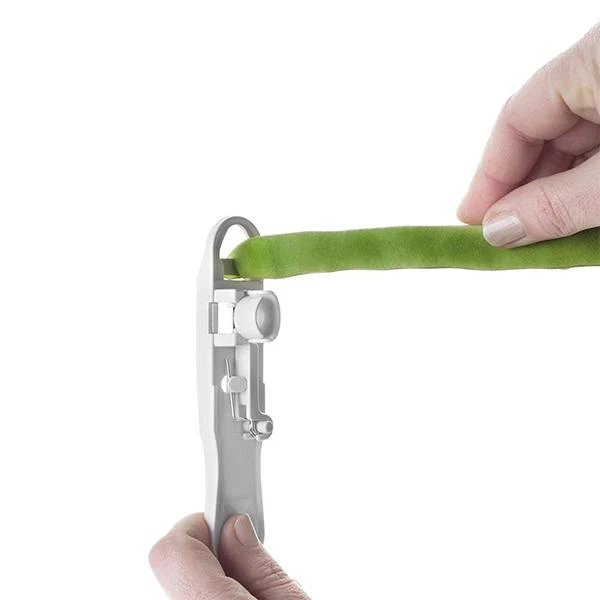 Este cortador nos permite cortar las judias verdes en juliana con rapidez y comodidad. En una sola pasada corta la judía y retira sus fibras laterales gracias a sus afiladas cuchillas.