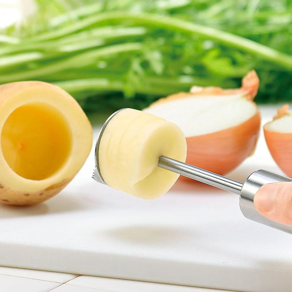 Con el vaciador de vegetales, podrás vaciar desde frutas a verduras y vegetales, ya sean más o menos gruesos y de mayor o menor dureza, para crear originales recetas y rellenar su interior con las delicias que se proponga el chef que llevas dentro.