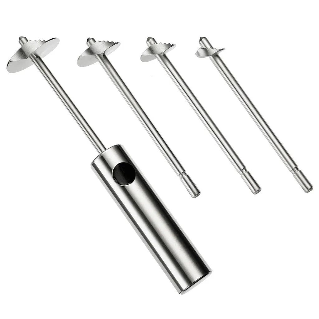 El vaciador disponer de 4 perforadores de distinto tamaño, para poder adaptarte a todo tipo de frutas y verduras de distintos tamaños, desde los más delgados a los más gruesos.