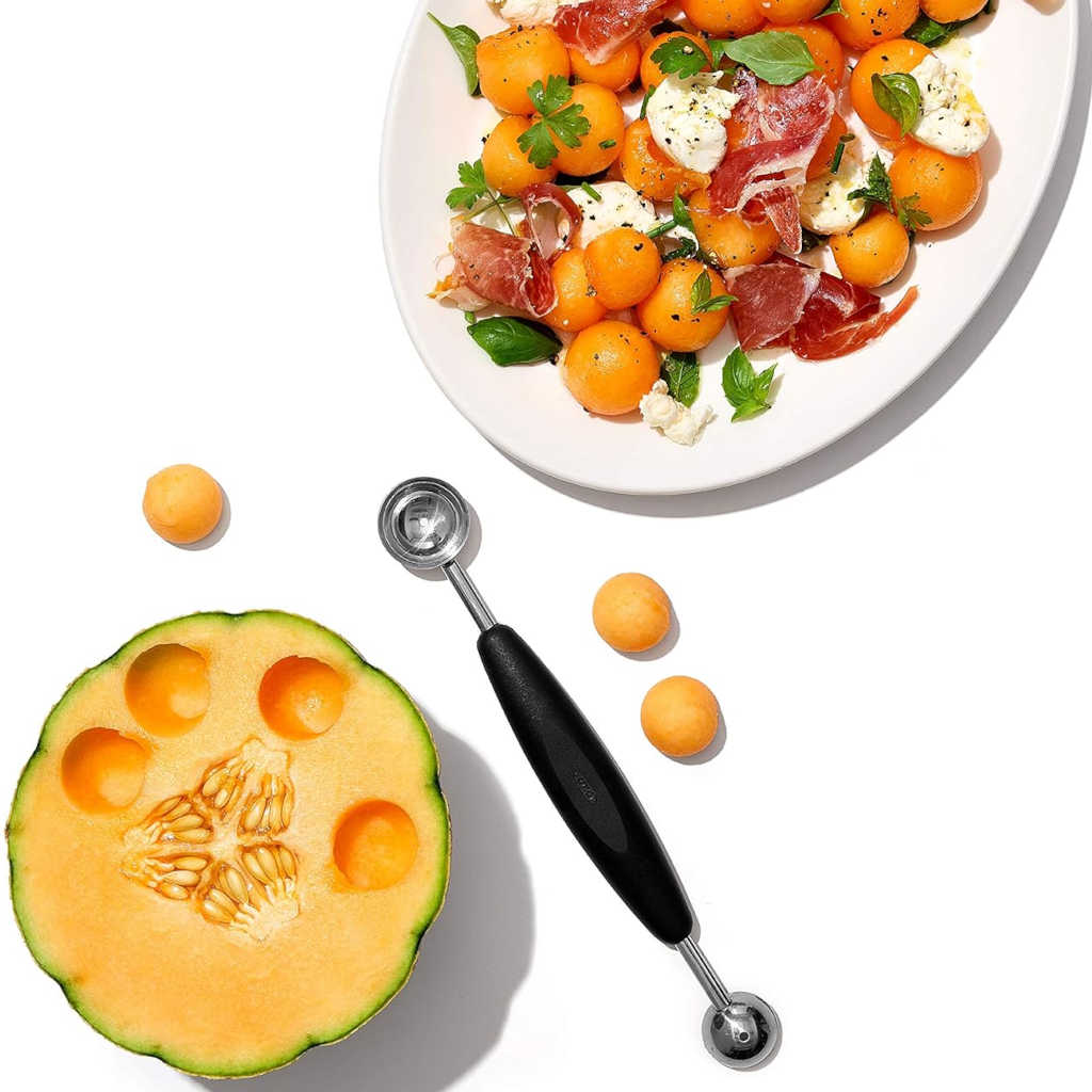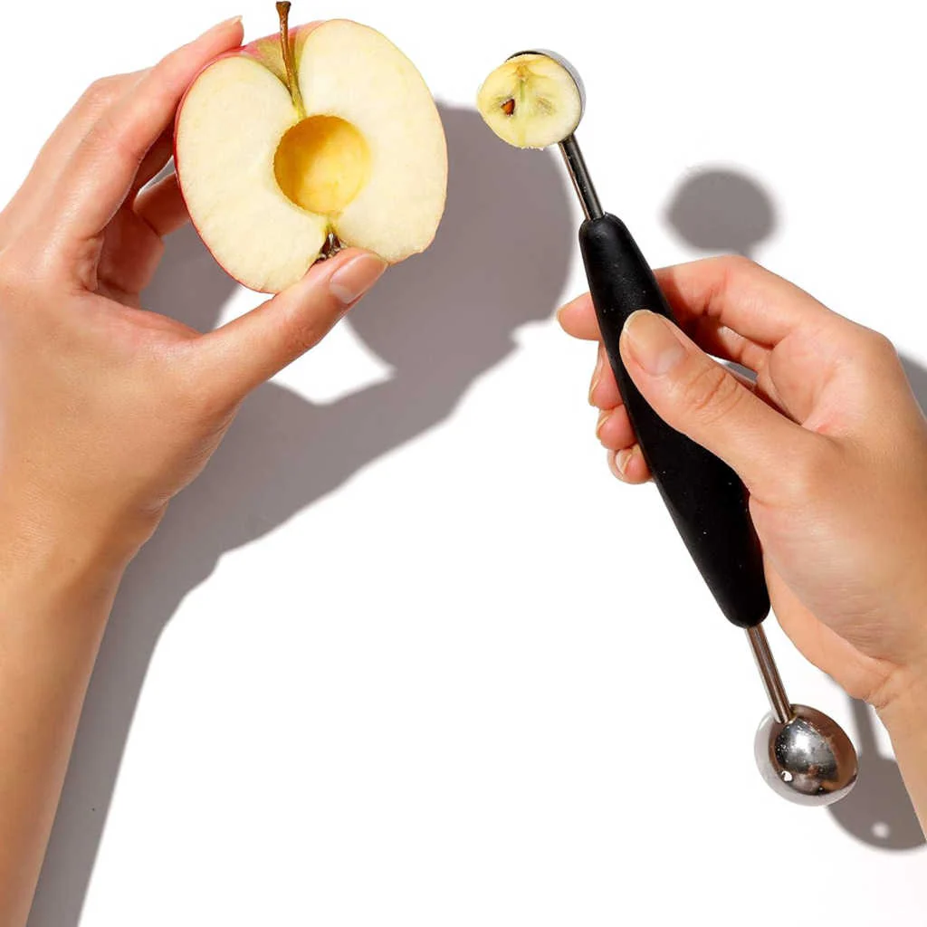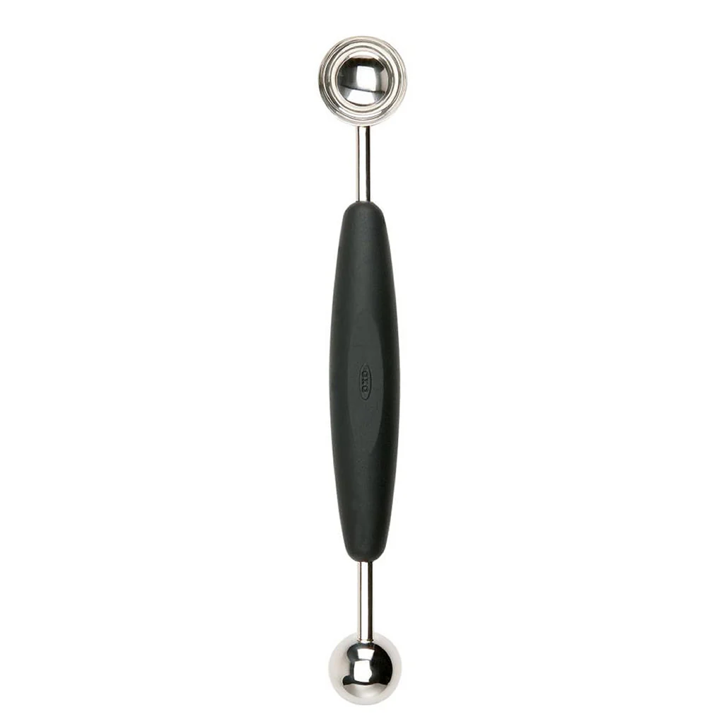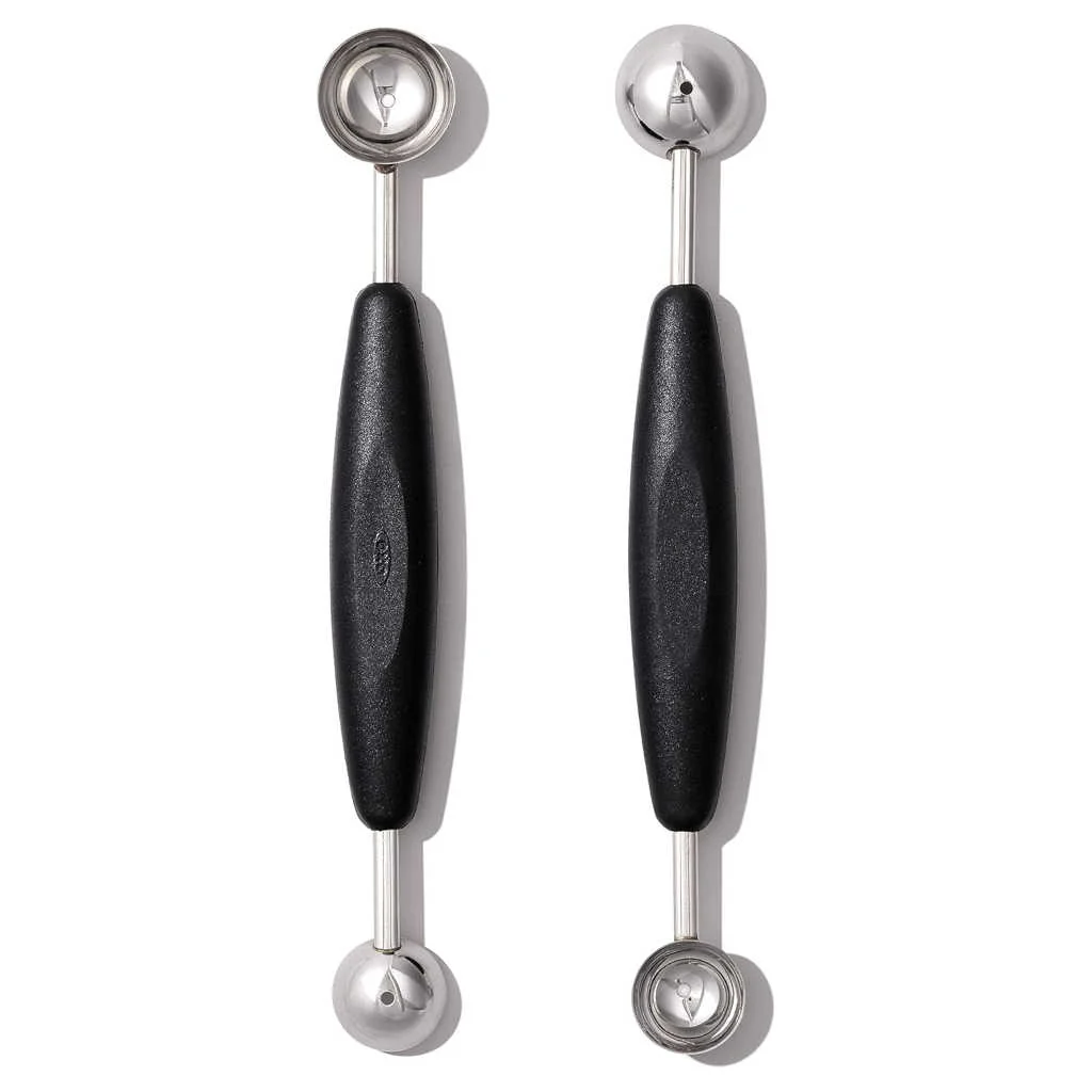 El Vaciador doble OXO es el utensilio perfecto para dar un toque creativo a tus preparaciones. Fabricado en acero inoxidable, ofrece durabilidad y precisión para vaciar frutas y verduras fácilmente ¡y que te queden unos platos la mar de bonitos! Cuenta con dos vaciadores de diferentes tamaños (3 cm y 2,5 cm), ideales para crear formas decorativas en frutas para ensaladas, postres o para dar un acabado especial a tus platos, según tus necesidades.
