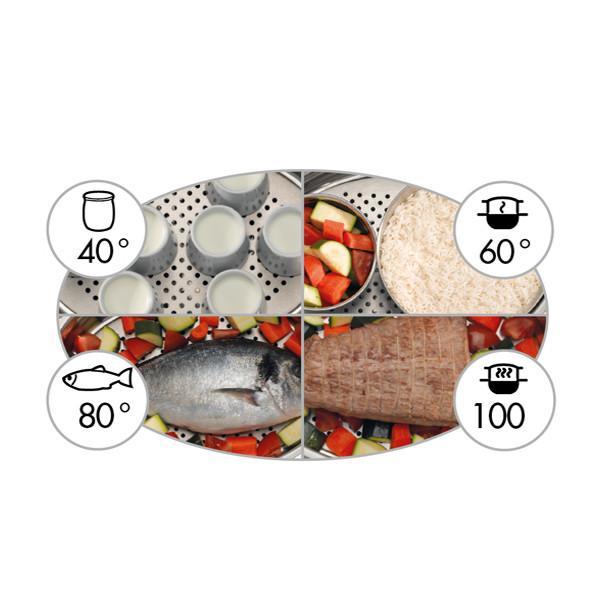 - Para carne, verduras, arroz y postres (100ºC)