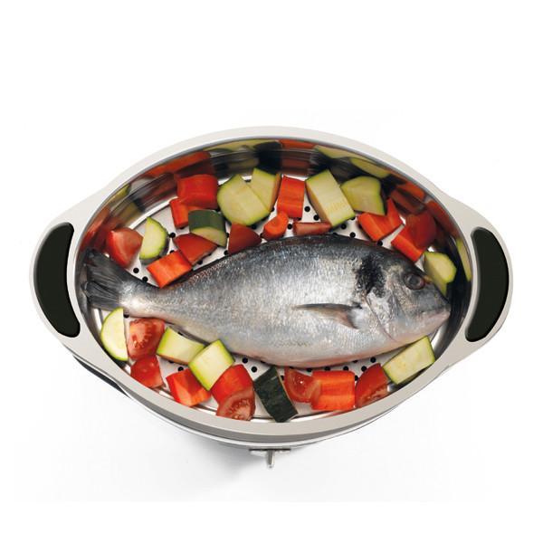 La vaporera eléctrica de Magimix es el utensilio perfecto para cocinar tanto recetas dulces como saladas al vapor. Dispone de 2 grandes cestas de acero inoxidable con las que podemos preparar dos recetas a la vez ya que están completamente aisladas. También permite retirar el fondo de la cesta superior y usar las dos cestas para cocinar grandes cantidades o alimentos de gran tamaño como un pollo entero.