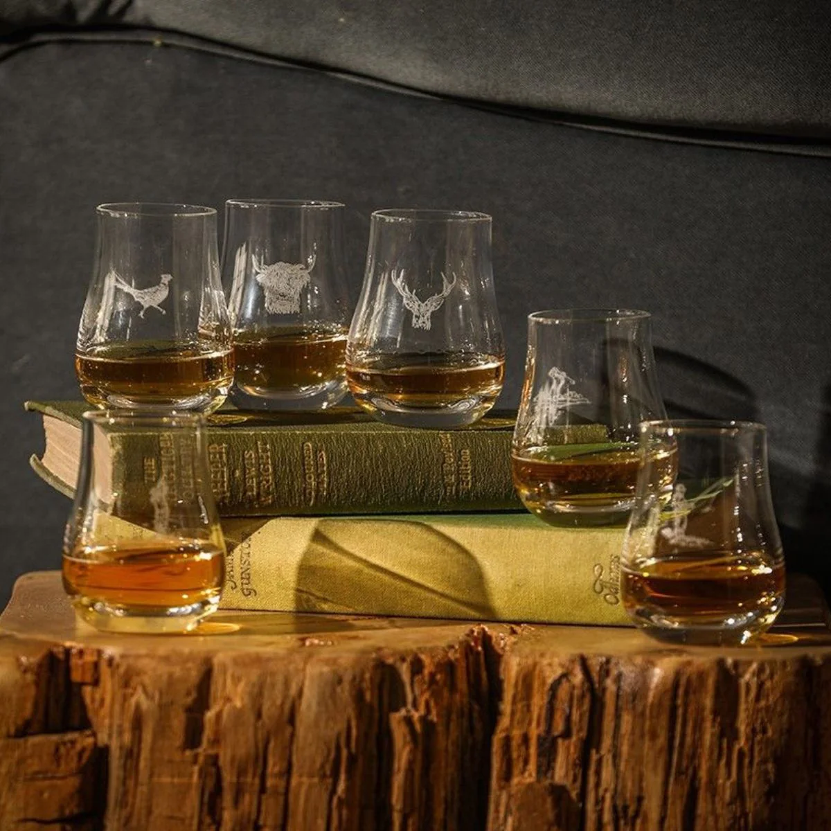 Cada vaso de cata para whisky o licor está grabado con la silueta de una imagen emblemática de Escocia. Podrás elegir el que más te guste, el que prefieras regalar o crear la colección completa. Ya sea la vaca de los Highlands, el ciervo rojo o un jugador de golf, deporte tradicionalmente escocés, este vaso de cata presentado en su elegante caja, es una pieza que no puede faltar en tu mueble bar y un regalo perfecto, tanto para quienes adoran las tradiciones y las cosas bellas, como para quienes disfrutan saboreando un buen whisky.