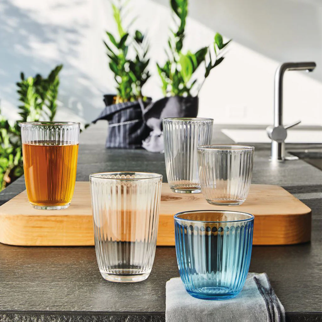 • Color Duradero: Los vasos Acqua son «color a masa», lo que significa que el color está integrado en el vidrio mismo durante el proceso de fabricación. Esto evita problemas comunes que pueden surgir en vasos de vidrio transparente con color aplicado en spray. El color se mantendrá vibrante y no se desvanecerá con el tiempo ni con el uso, aun lavándolos en el lavavajillas y tras ciclos y ciclos de lavado.