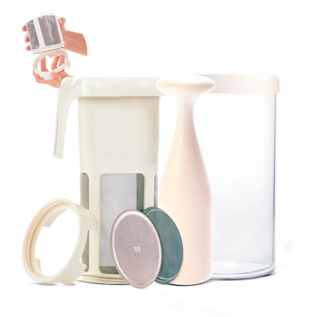 Podrás hacer todo tipo de bebidas vegetales, tanto de semillas, frutos secos o cereales, como horchata, zumos frutas, verduras y hortalizas, yogures y quesos, ¡e incluso café! Además, puedes usar el vaso filtrador con cualquiera de sus discos, tanto con su recipiente, como en cualquier olla, jarra o cazuela si quieres preparar una mayor cantidad de bebida.