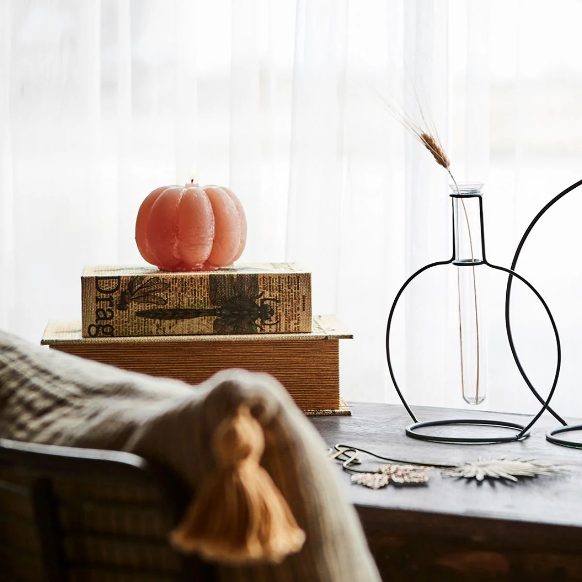 - Su forma de calabaza es un clásico del otoño que llena cualquier rincón de encanto y calidez.
