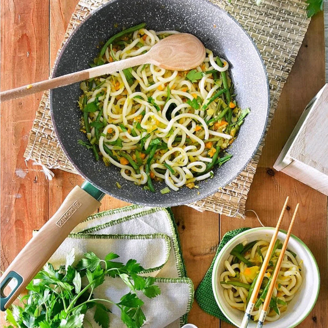 Sin duda, el Wok Amazonia de Monix, como tantos woks, te abre las puertas a una amplia variedad de posibilidades en la cocina…¡Pero el wok Amazonia lo hace abrazando el compromiso con la sostenibilidad! Este wok, con su corazón forjado en aluminio puro y su base robusta de 4mm, es una promesa de eficiencia energética y cocina saludable, permitiéndote explorar desde los fritos más crujientes hasta los guisos más suculentos ¡Siempre con menos consumo energético! Además, es de lo más bonito., y su revestimiento te sorprenderá.