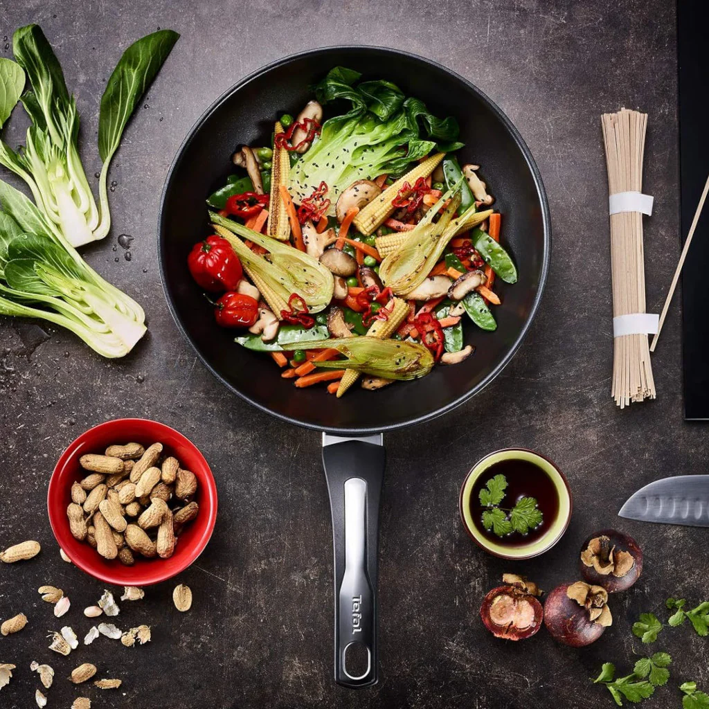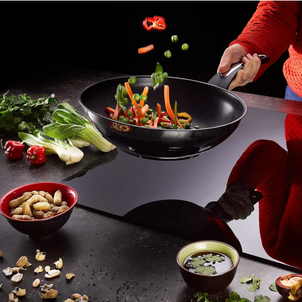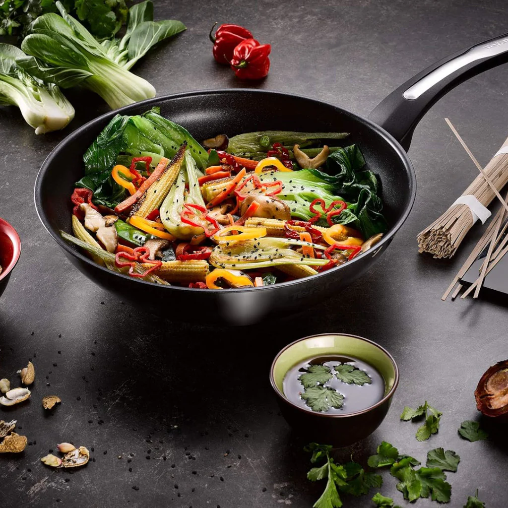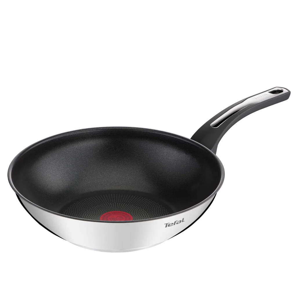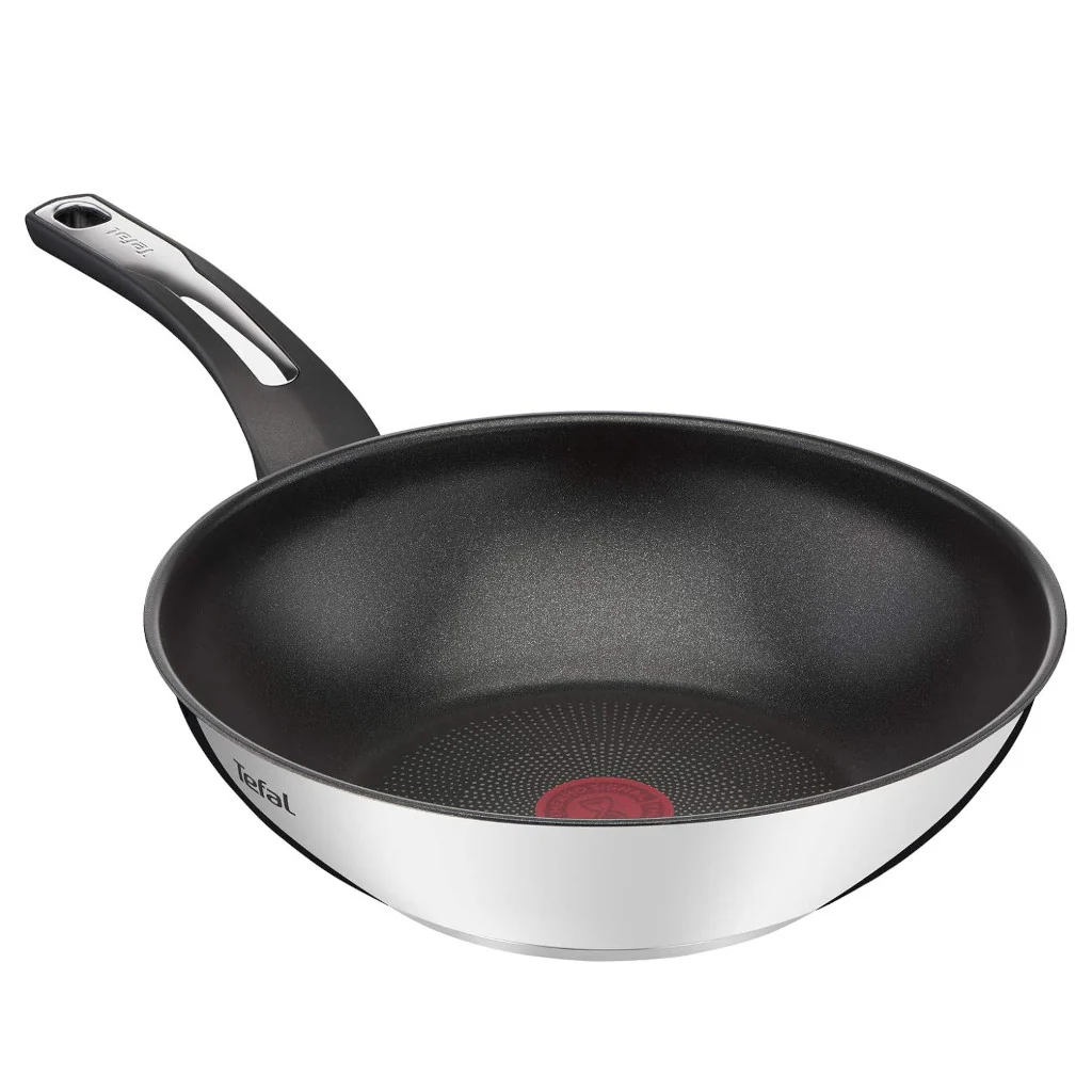El Wok antiadherente Emotion de Tefal es el utensilio perfecto para preparar deliciosas recetas de cocina india de una manera práctica y versátil. Gracias a su revestimiento antiadherente de alta calidad, podrás cocinar todo tipo de alimentos sin que se peguen, facilitando la limpieza y reduciendo la necesidad de utilizar aceite en exceso, mientras que el inox exterior no solo lo hace un wok elegante, sino que te permite ponerlo al fuego con la temperatura a alta intensidad para un salteado perfecto.