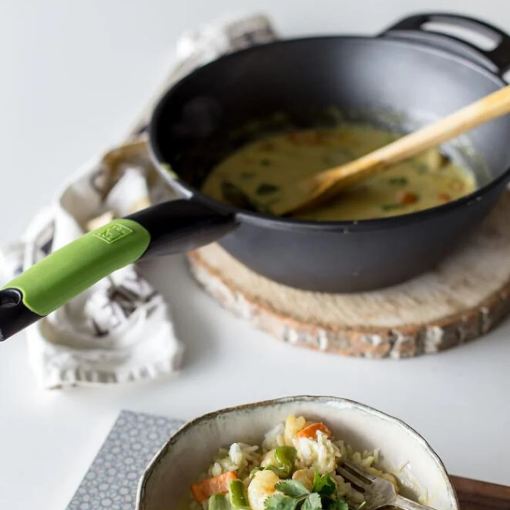 • Diseño ergonómico del mango. Su diseño ergonómico y termorresistente permite manejarlo cómodamente. La silicona es del color verde característico de la colección Prior.