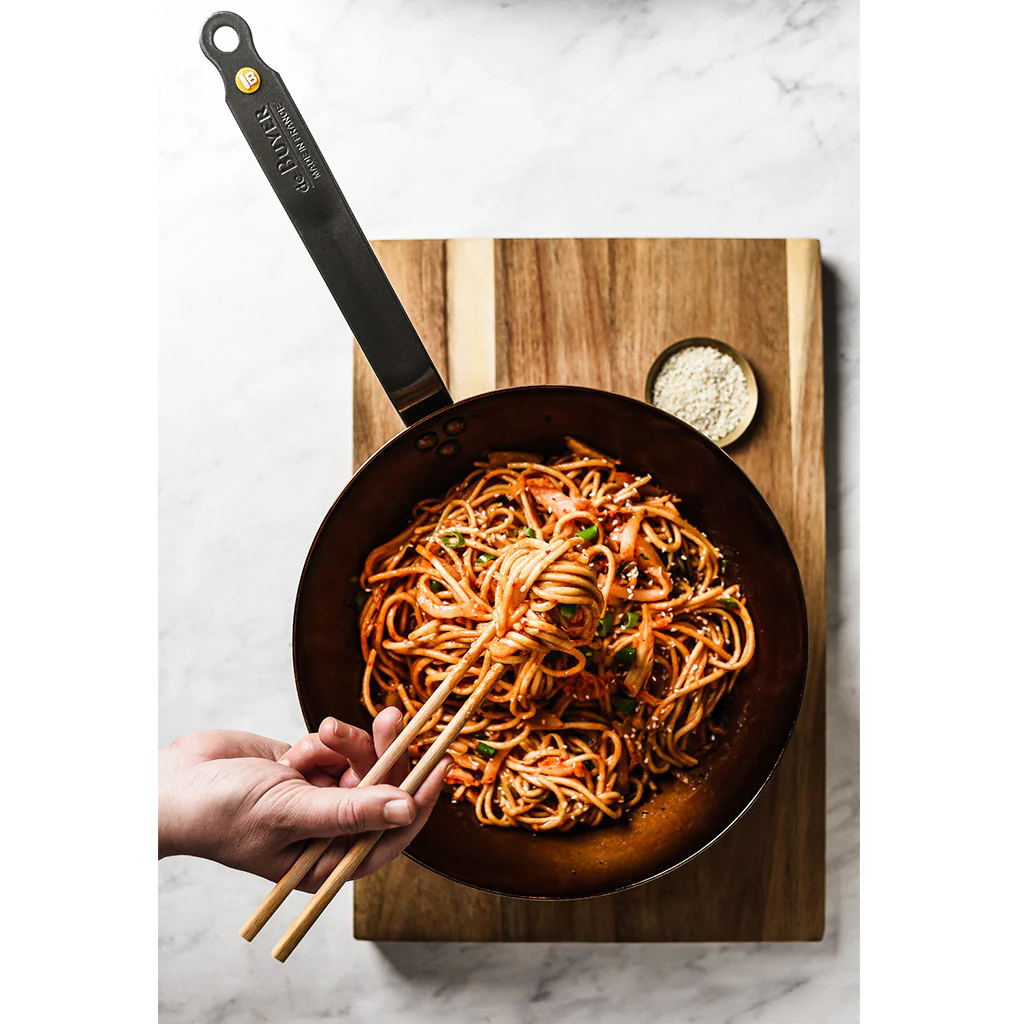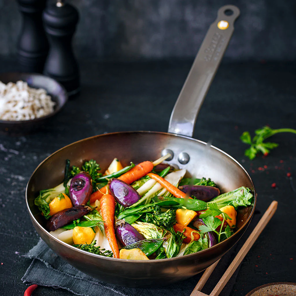 ¡Las populares sartenes de hierro de De Buyer ahora también disponibles en formato wok! Al igual que las sartenes de hierro Mineral de De Buyer, estos woks son ecológicos, reciclables, te ofrecen una cocción 100% natural, están libres de antiadherentes, se calientan rapidísimamente y son para toda la vida.