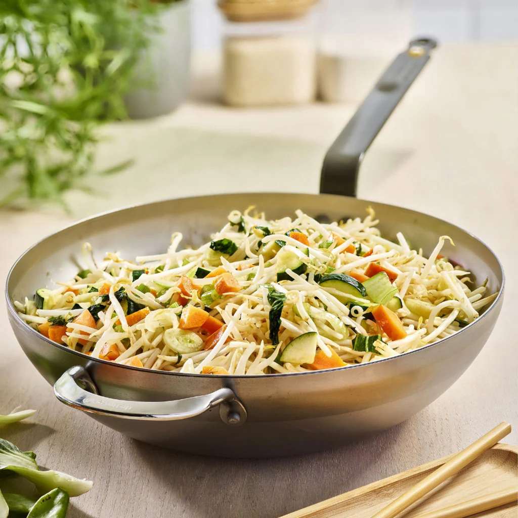Los woks de 24 y de 28 cm están disponibles en dos diseños: