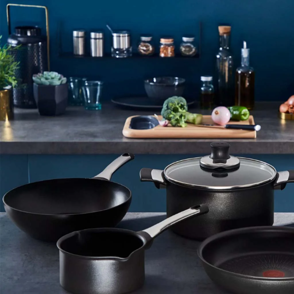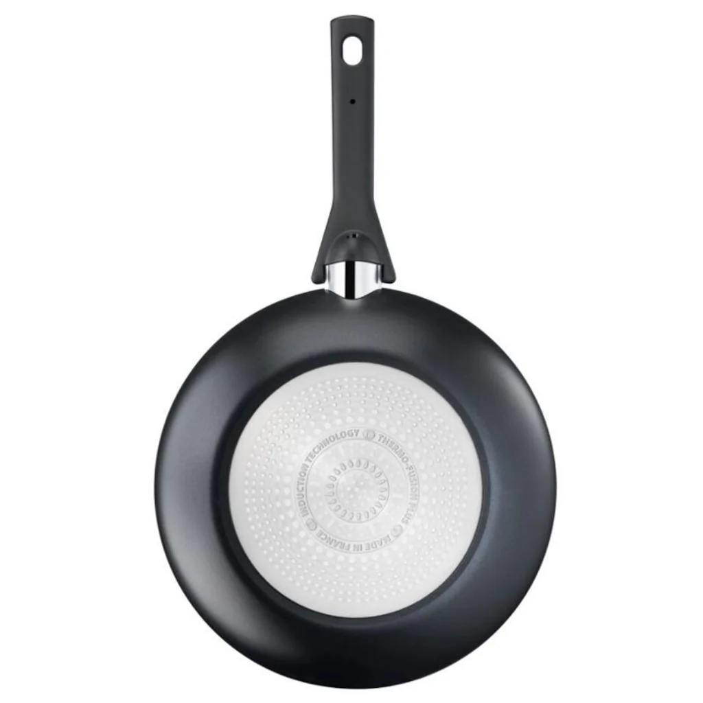 - Amplia superficie y gruesa base Thermo-Fusion+ que garantiza un rápido y uniforme calentamiento de toda la sartén, para una cocción homogénea de los alimentos y un mayor ahorro energético.