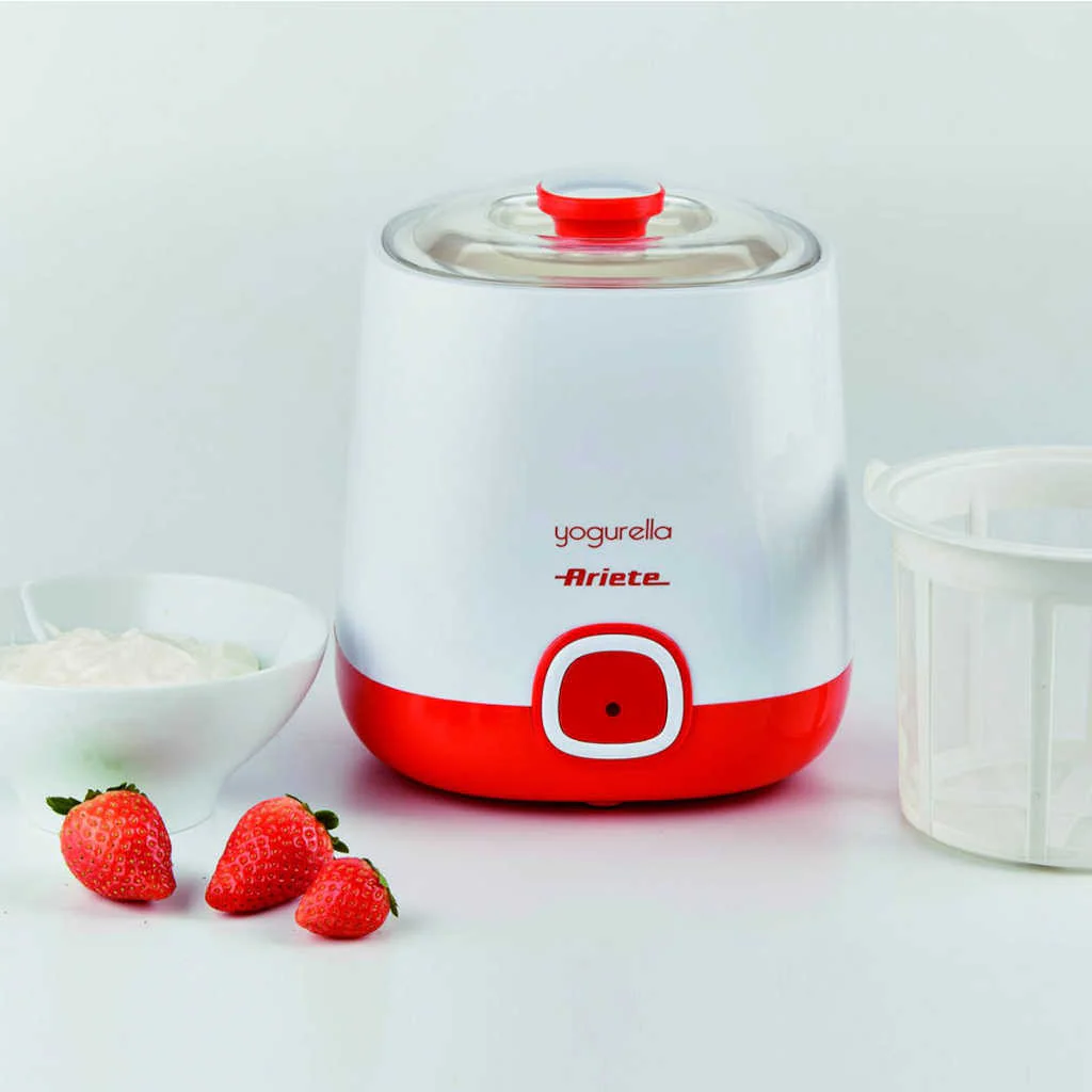 La Yogurtera Yogurella para yogur clásico y griego de Ariete es el ayudante que necesitas para preparar tu yogur favorito. Con su diseño compacto y funcional, es muy fácil de utilizar y ocupa muy poco espacio, facilitándote la elaboración tanto del yogur blanco tradicional como del yogur griego. Su tapa doble garantiza la máxima higiene durante el proceso de fermentación y gracias a su cesta de filtrado, conseguirás la perfecta textura del auténtico yogur griego.
