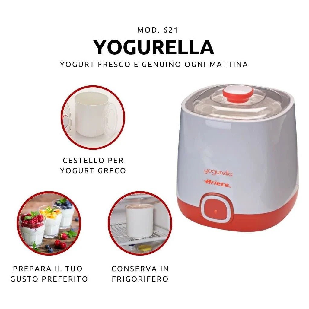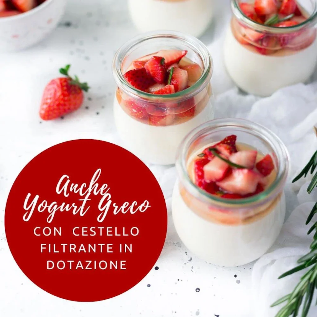 - Incluye: recipiente de 1 litro con tapa, recipiente adicional, cesta de filtrado para el yogur griego.