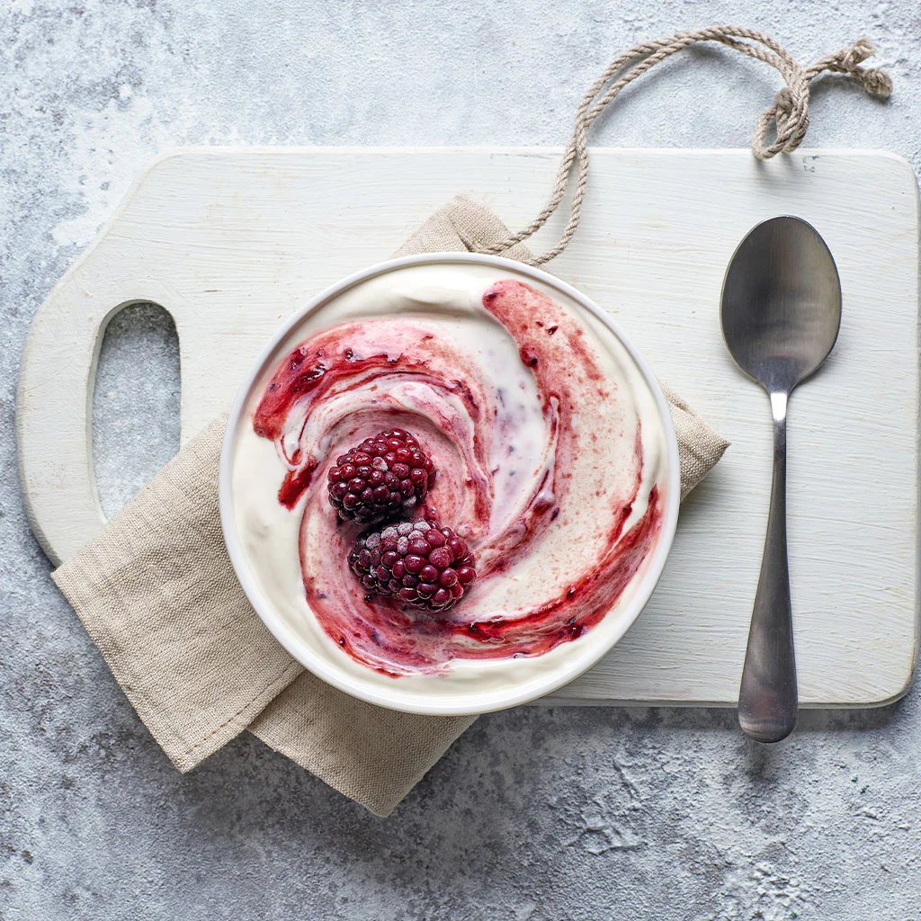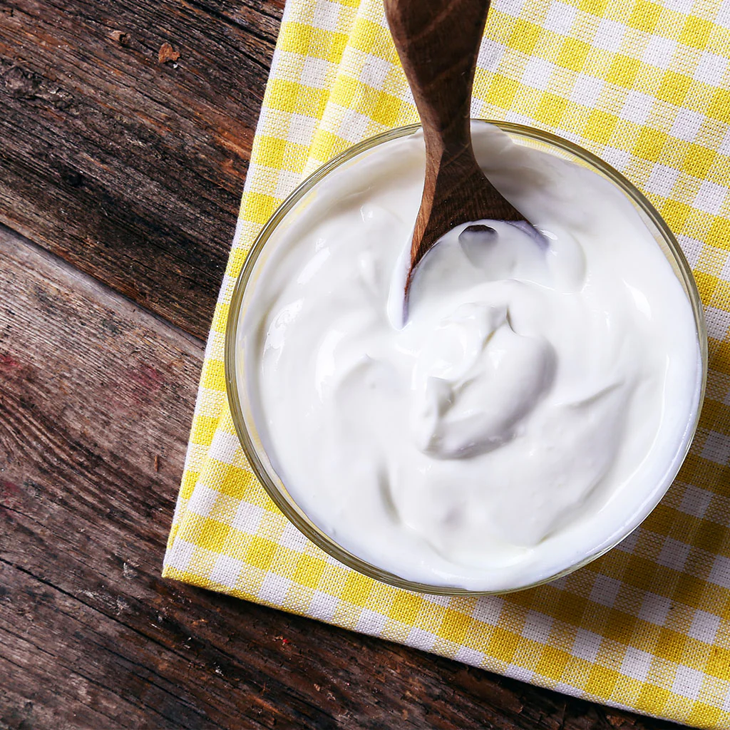 - Verter el yogur blanco en la cesta y ponerle la tapa.